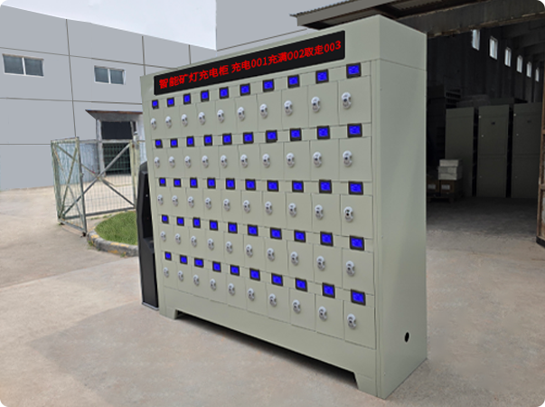 | 产品名称 | 蓝屏智能矿灯充电柜 | 外型尺寸 | 2250×620×2120mm | 充电效率 | >85% |