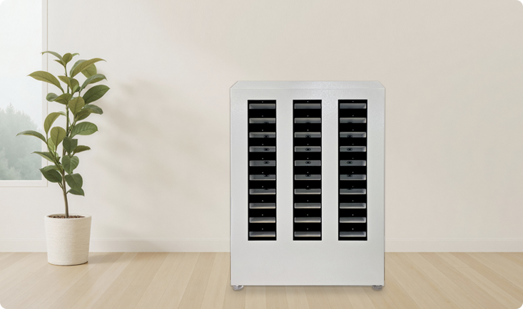 | 产品名称 | 磁吸式工作卡智能充电柜 | 外型尺寸 | 340×162×368mm (带脚垫) | 充电保护响应时间 | 5ms |